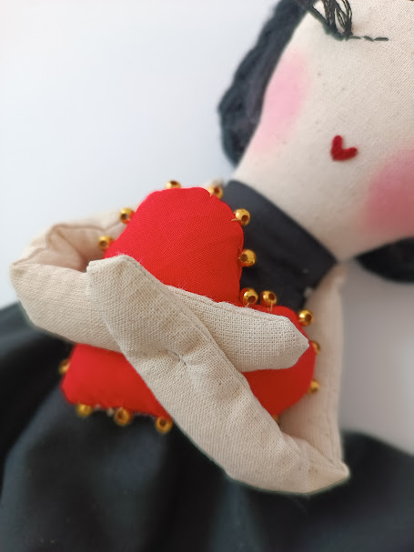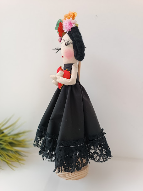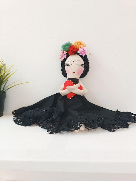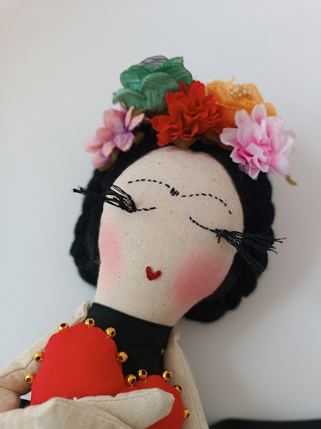 “Esta boneca carrega o coração de FRIDA, que pintou a sua dor e transformou-a em beleza. Não precisas de ser perfeita para ser extraordinária. Frida ensinou-nos que a beleza real está na coragem de sermos quem somos, com todas as nossas complexidades e contradições. Esta Frida mensageira vem dizer ao teu coração que tu também podes criar beleza a partir da tua própria verdade – porque não te esqueças: Tu és mais corajosa do que aquilo que imaginas”