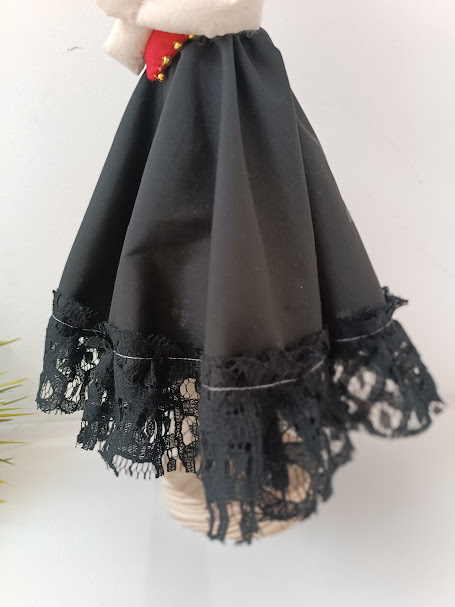 -Tecido de algodão, rendas, cabelos em  lã acrílica, flores artificiais