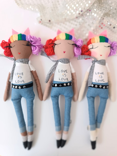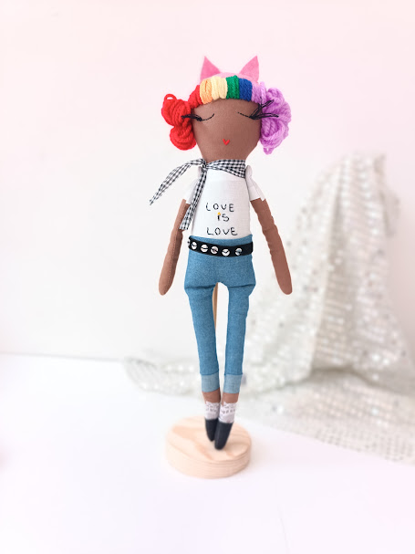 Ideal para pendurar na parede ou sentar numa prateleira esta boneca inspirada em toda a comunidade do orgulho LGBTQIA+ traz um toque de liberdade ao teu ambiente. Uma peça única de decoração que combina orgulho com aconchego. Como artista e criadora de bonecas uso as minhas mãos para representar sentimentos